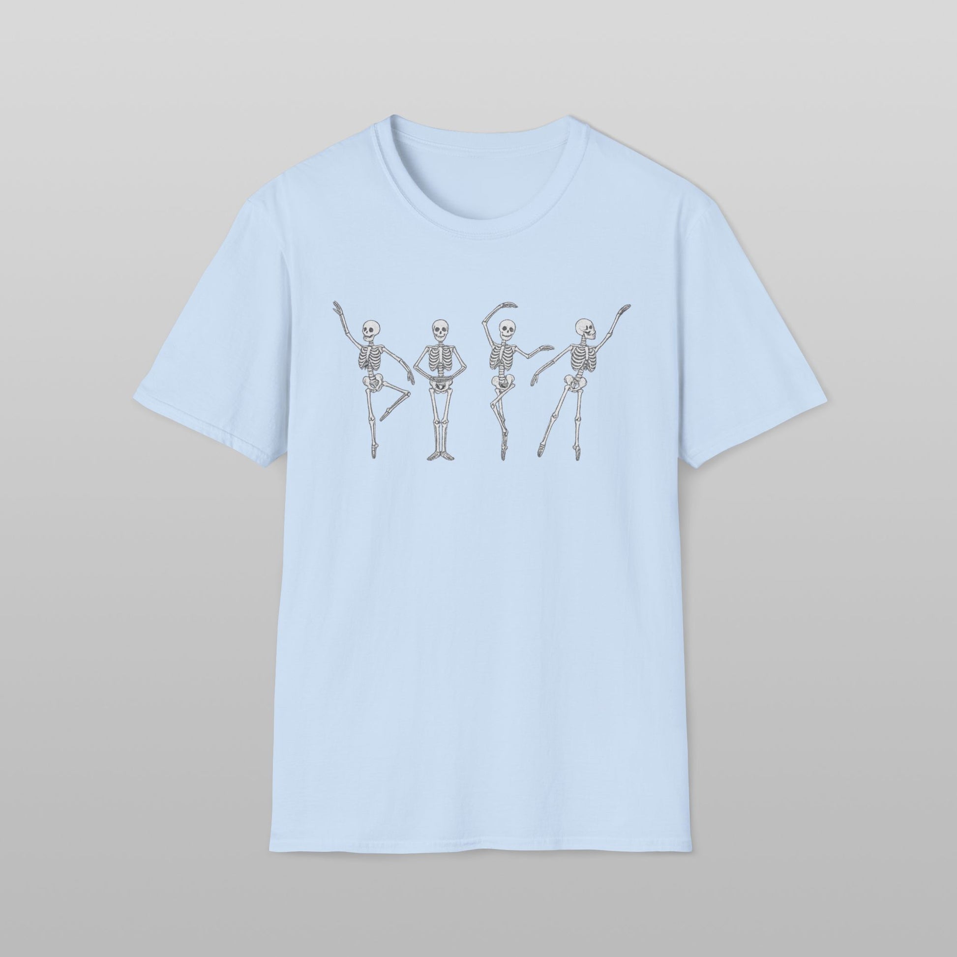 Show off your spooky side in style with our Dancing Skeletons Halloween T-Shirt! Featuring a playful line of skeletons striking ballet-inspired poses, this shirt is perfect for Halloween parties, pumpkin patch outings, or adding a touch of fun to your fall wardrobe. The minimalist vintage-style print pops against the soft tee, making it a comfortable yet eye-catching choice for spooky season.