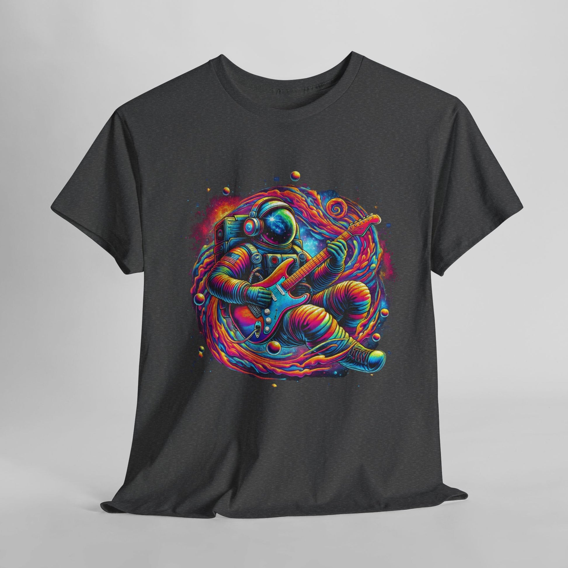 Journey through the cosmos in style with our 'Psychedelic Space Astronaut' T-Shirt, perfect for adventurers of both the universe and music. Featuring a vibrant, otherworldly design of a cosmic guitarist set against a galaxy backdrop, this unisex tee is a must-have for anyone who loves to stand out.
